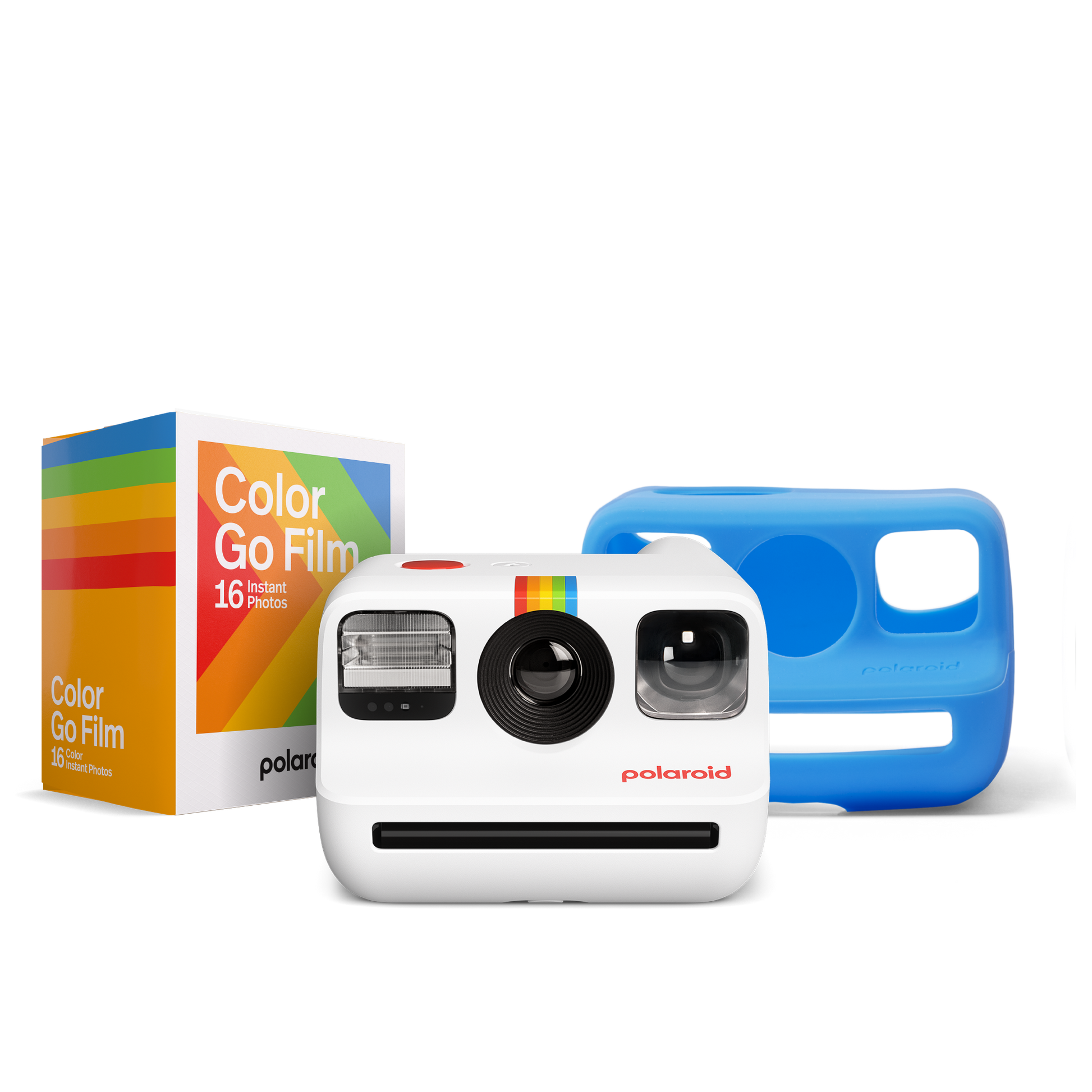Capture life on the Go. The Polaroid Go instant camera is your most portable, wearable, take anywhere-able creative sidekick. The world’s smallest instant camera comes with a selfie mirror, self-timer, double exposure, and can be paired with its very own teeny tiny color filters. It’s the classic design—except way smaller. With this set, you're all set to go with included Polaroid Film and a silicone skin case