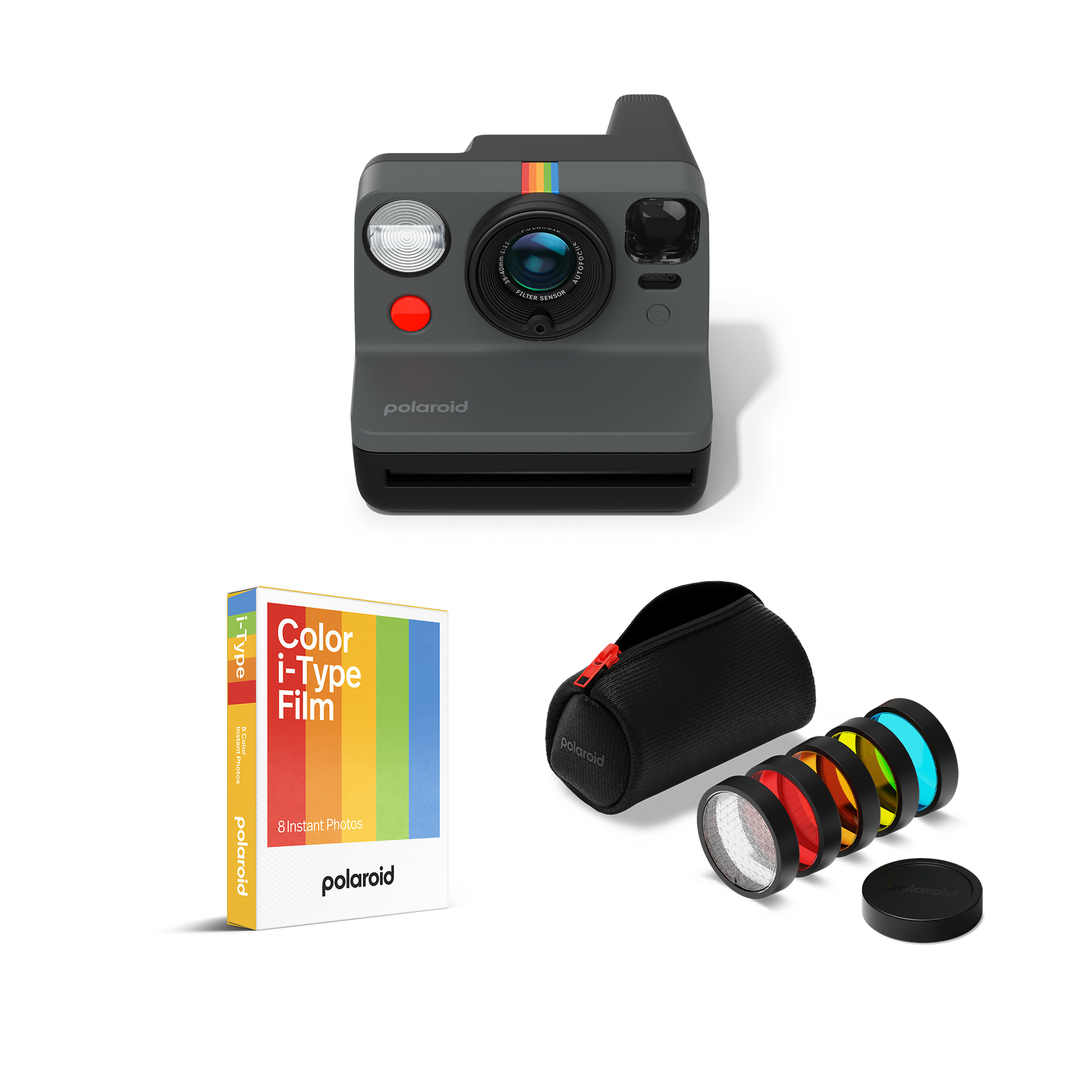 Bundle the Polaroid Now Gen 3 with the filter set and a pack of i-Type instant film, and let your true colors shine. The classic analog camera has been optimized for sharper pics in bright lighting. Featuring upgraded light meter position, ranging sensor and two-lens autofocus system. Plus, built-in tripod mount, filter compatibility and self-timer and double-exposure modes. Compatible with Polaroid i-Type Film.