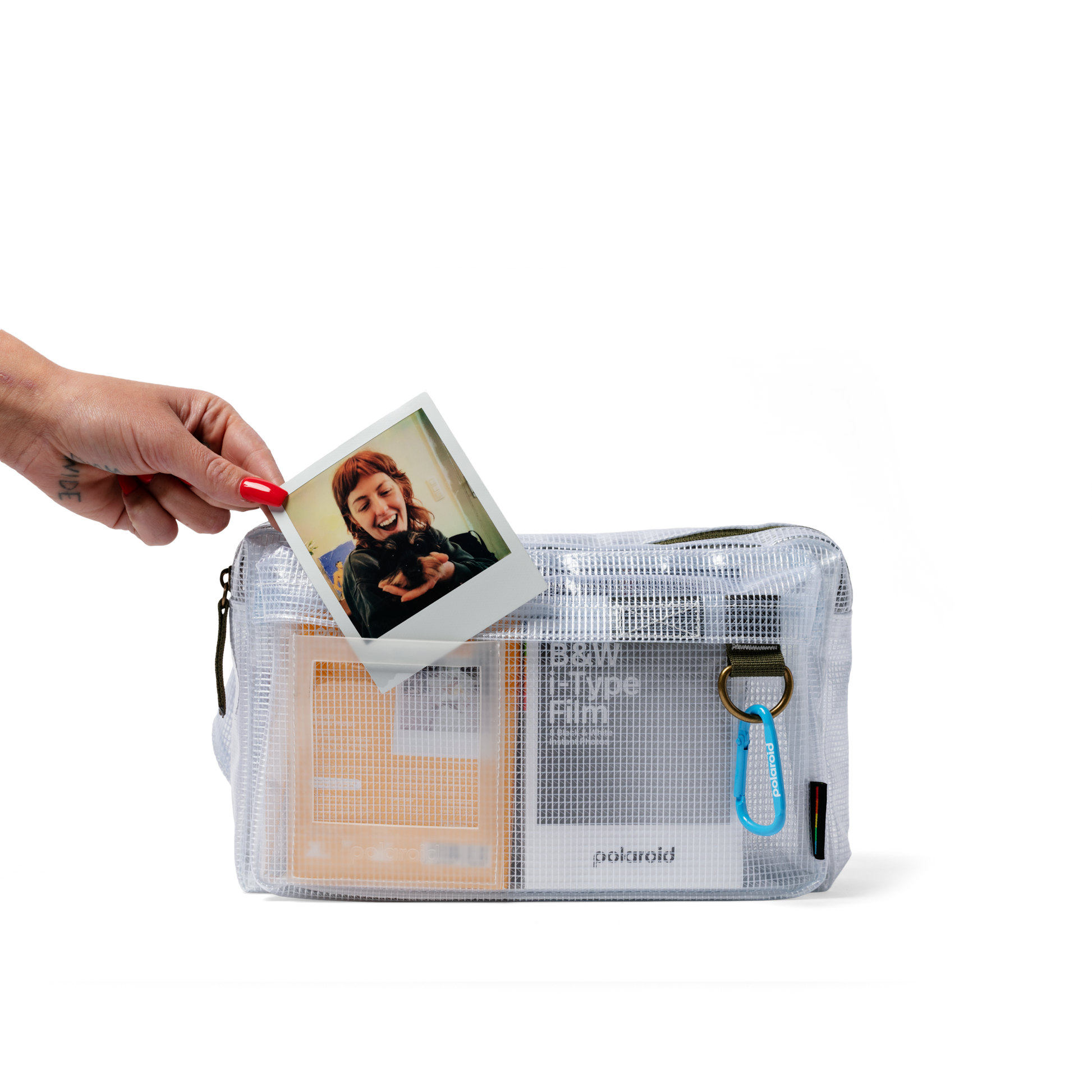 Effortlessly carry your everyday essentials with this crossbody bag. Designed with a chunky flat strap and clip fastening for comfort and peace of mind. Style it over the shoulder and complete the look with a Polaroid picture or a few accessories on the carabiner.